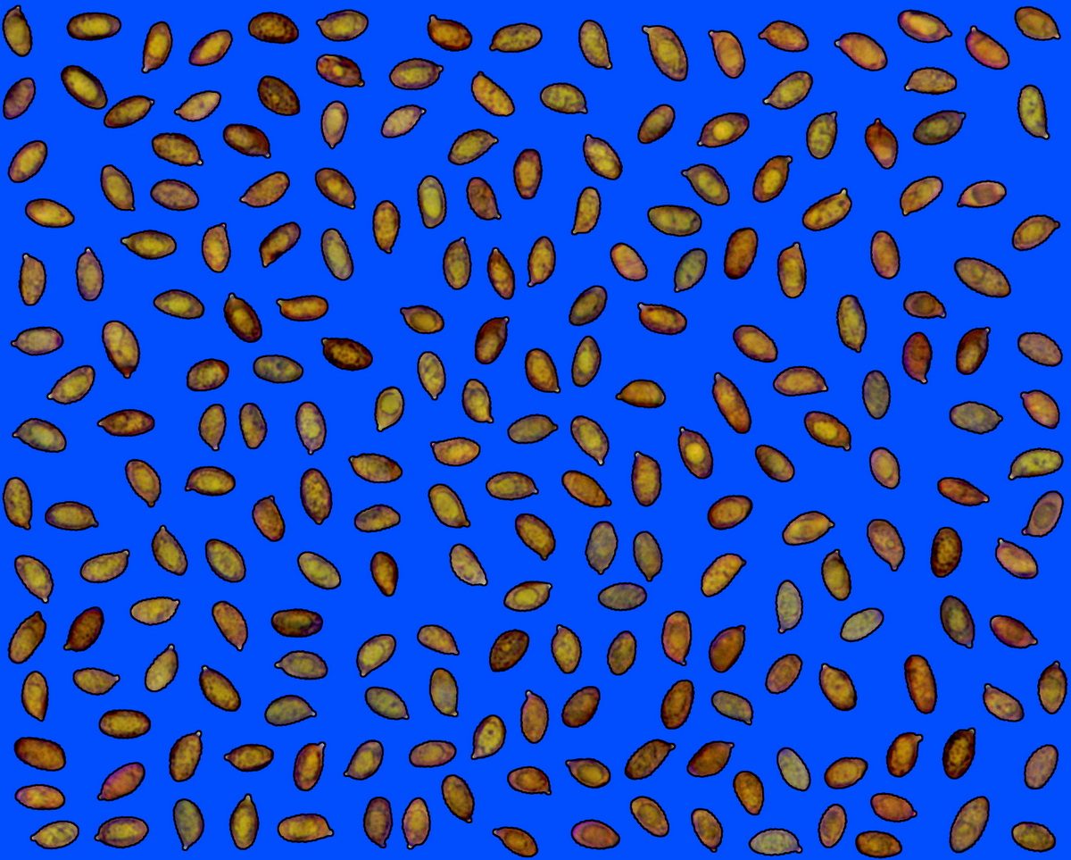 (n 64), Q= (1,53 )1,625 - 1,86(2,01), media 8,79 × 5,1µm,