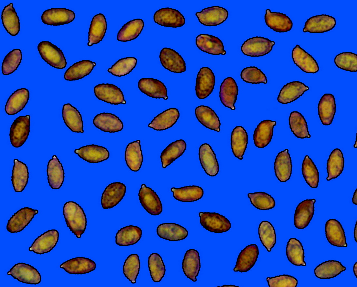 µm, con pigmento giallo-bruno, incrostate.