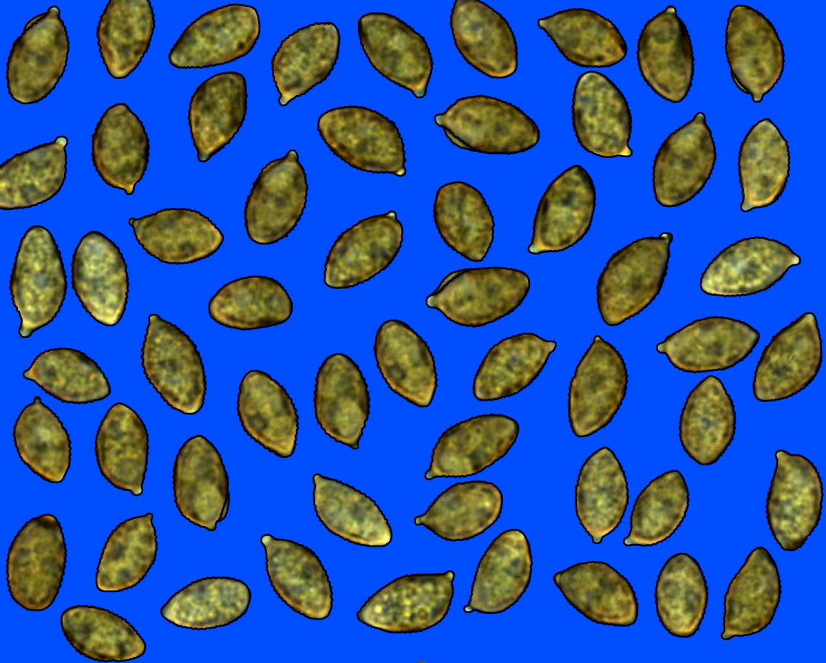 giallastro, larghe, (3,24)3,96-4,57-10,84(11,17)µm.