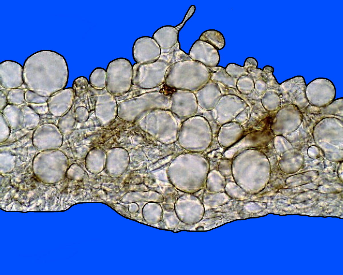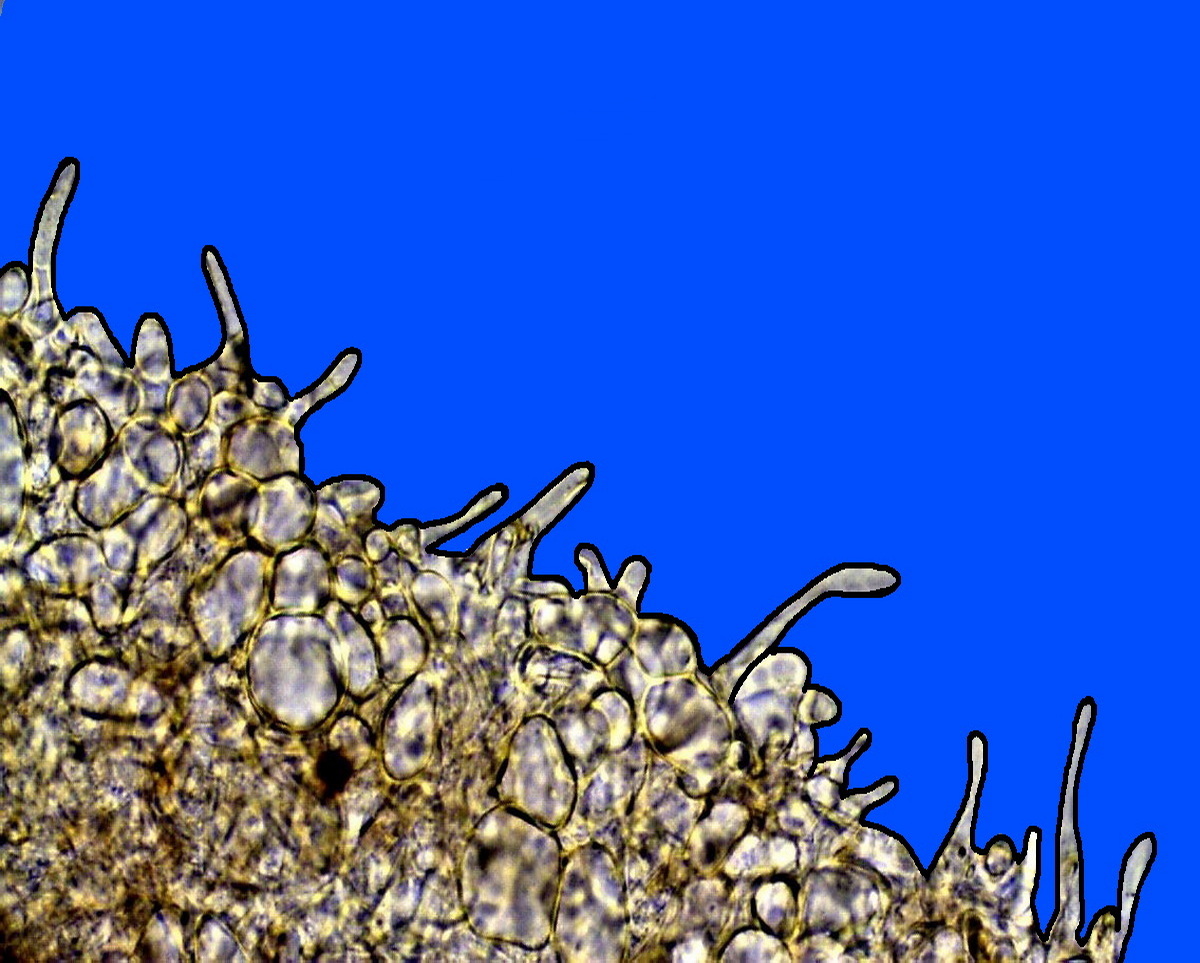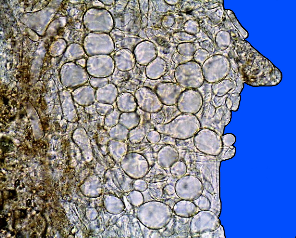 in basso e leggermante allargato dove si raccorda con l’apotecio,