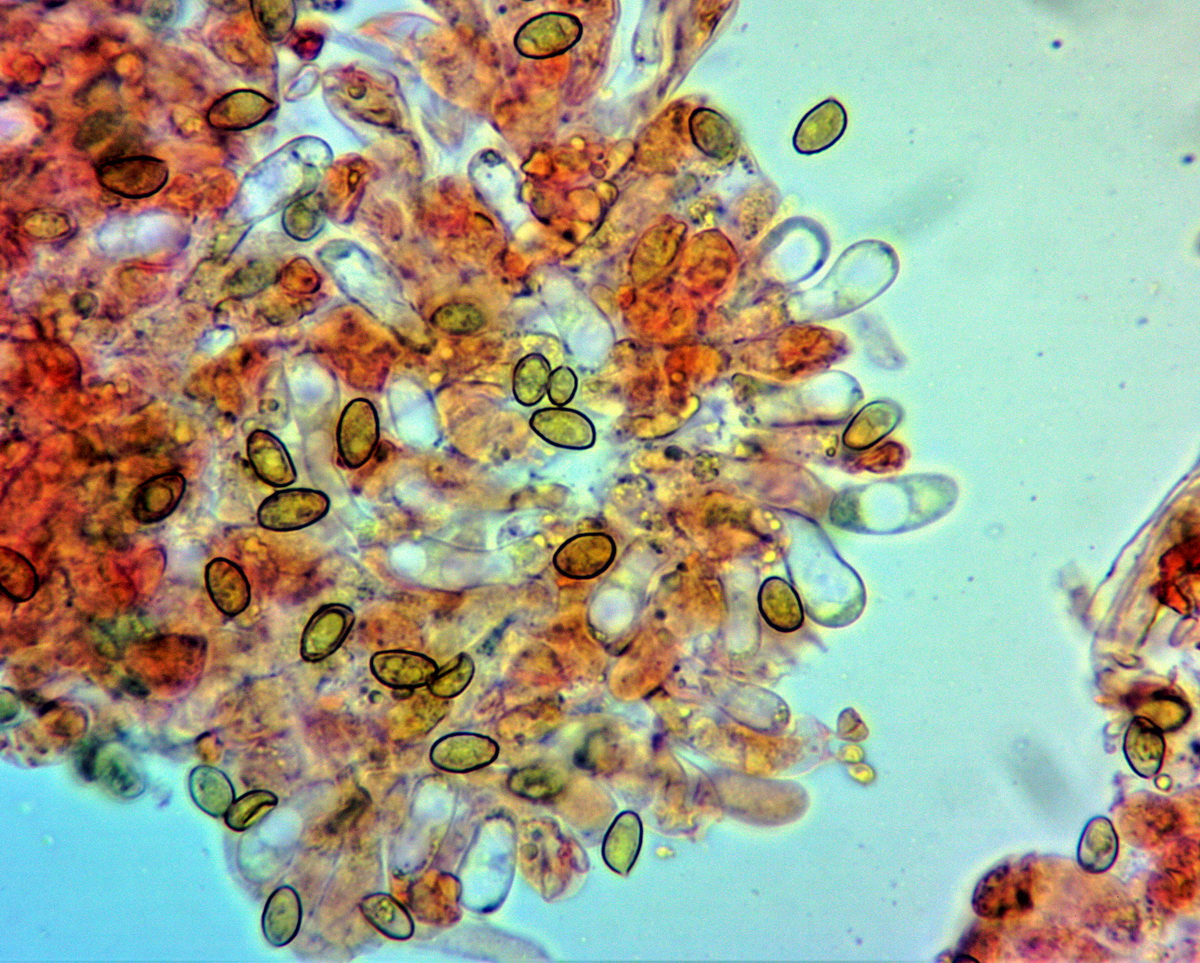 con ife larghe (13,61)14,37-18,51-29,97(32,13)µm pigmento