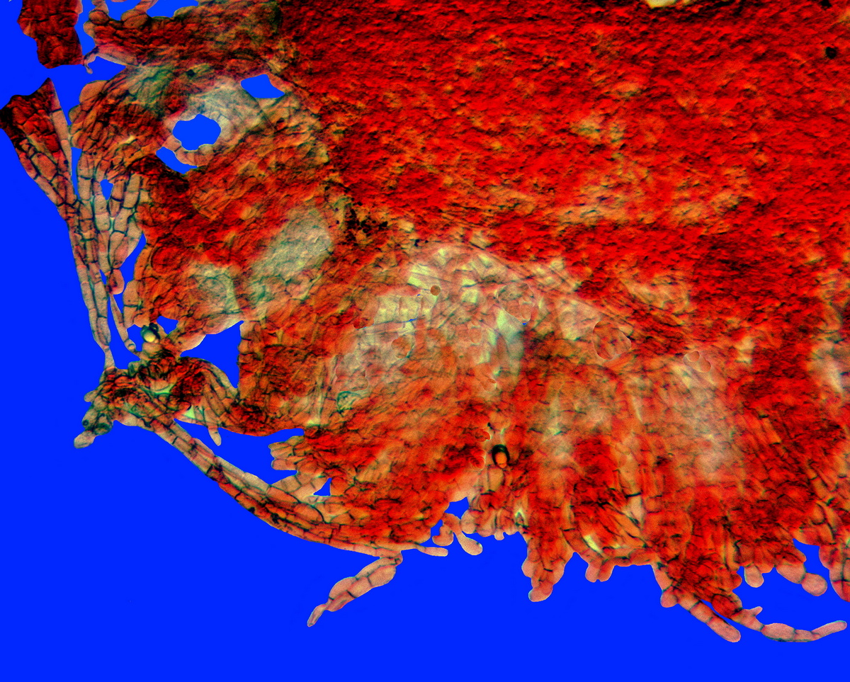textura intricata, formata da ife intrecciate, settate, ramificate,