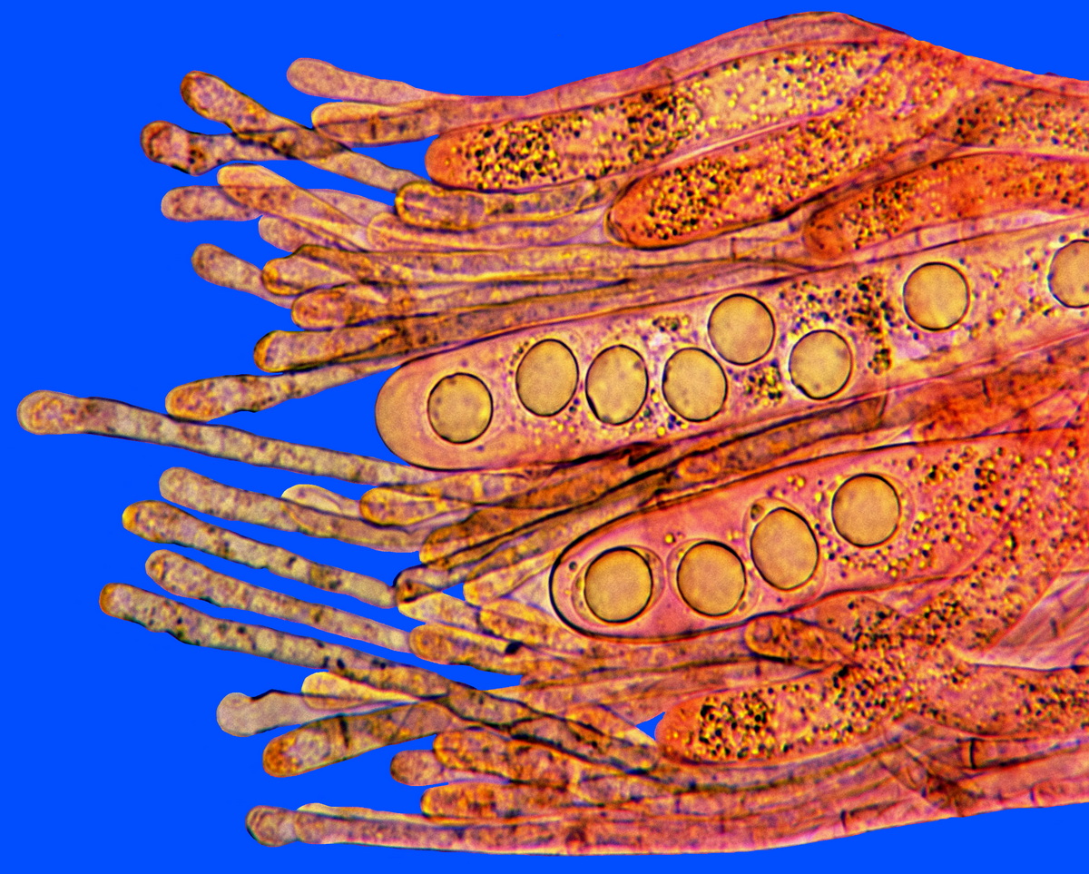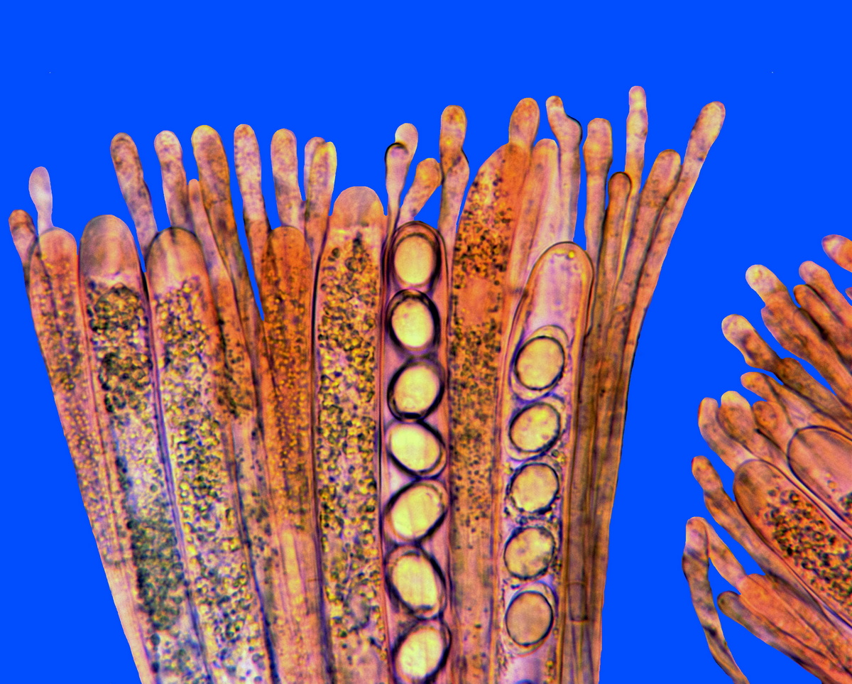 cilindracee, eccedenti gli aschi, sottili, apice claviforme,