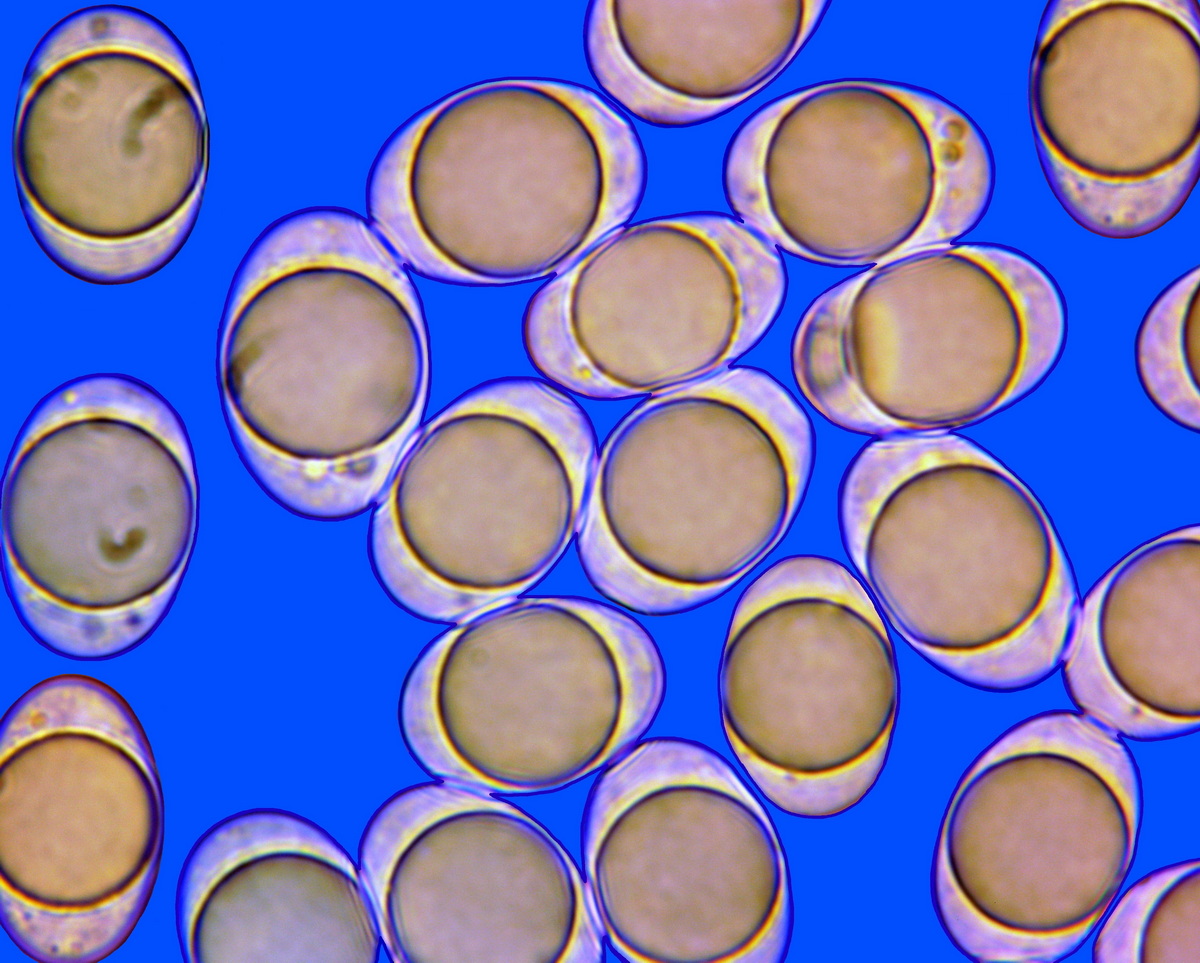 largamente elissoidali, liscie, con grossa guttula centrale,