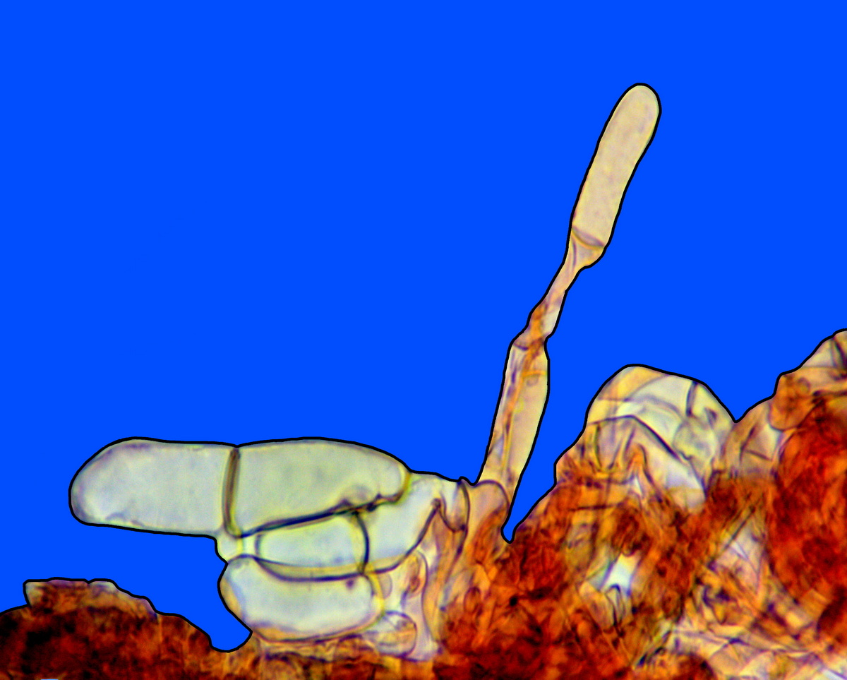 formata da ifecilindriche, parallele, incrostate, larghe (2,72)3,69-6,525-8,24(8,92)µm,