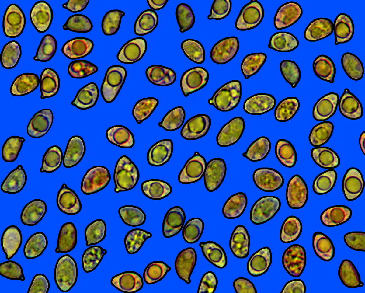 bruno-giallastro, larghe (4,03)4,80-8,875-12,86(14,14)µm.
