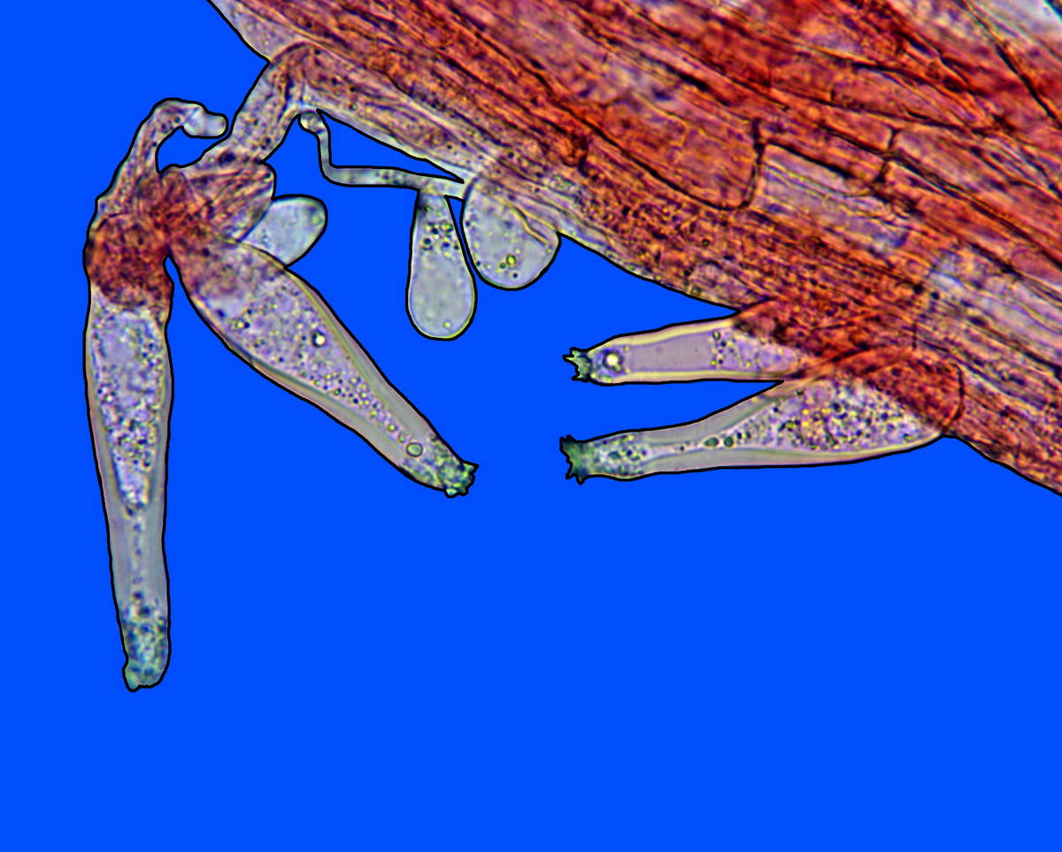ife cilindriche, incrostate, con pigmento bruno-giallastro,