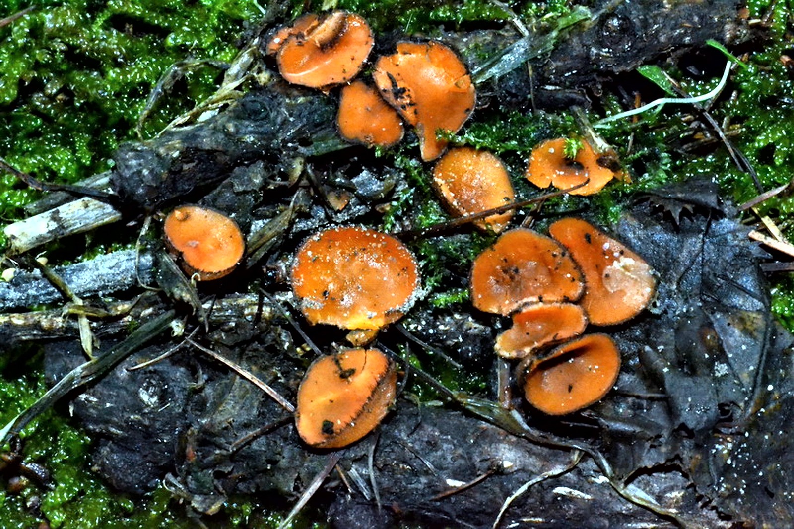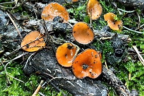 coppa, poi discoidale, imenio liscio, ± ondulato, arancio
