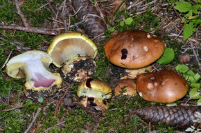 Carne biancastra al taglio, giallo-citrino-verdastra