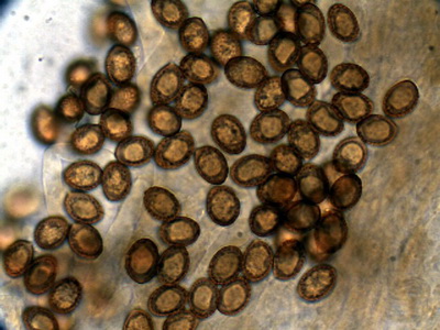 ellissoidali, moderatamente verrucose, (8,88)9,31-9,5-10,27(11,32)