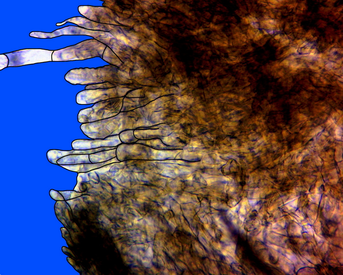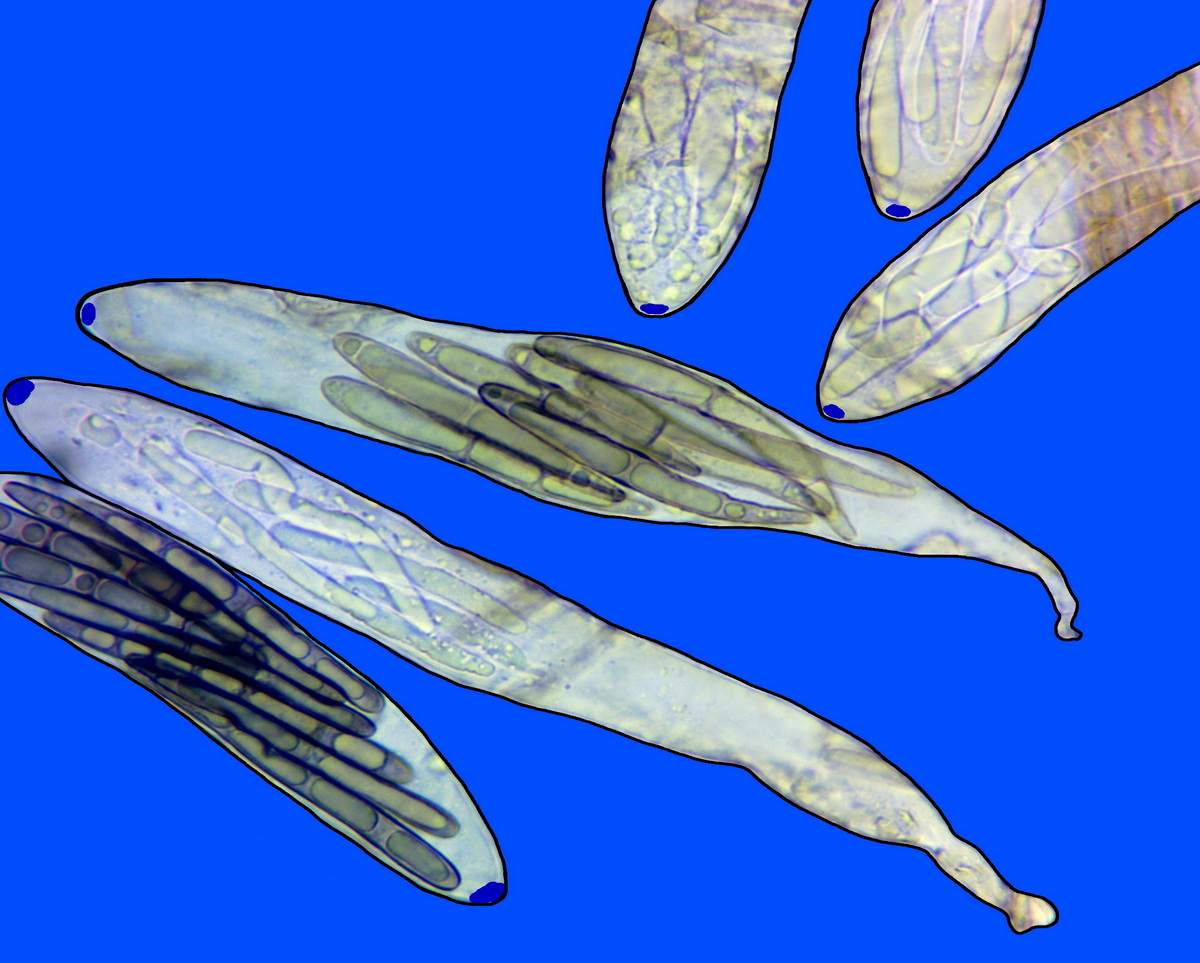 Apotecio: 30-60 di altezza × 3-7 mm di larghezza, spatoliforme,
