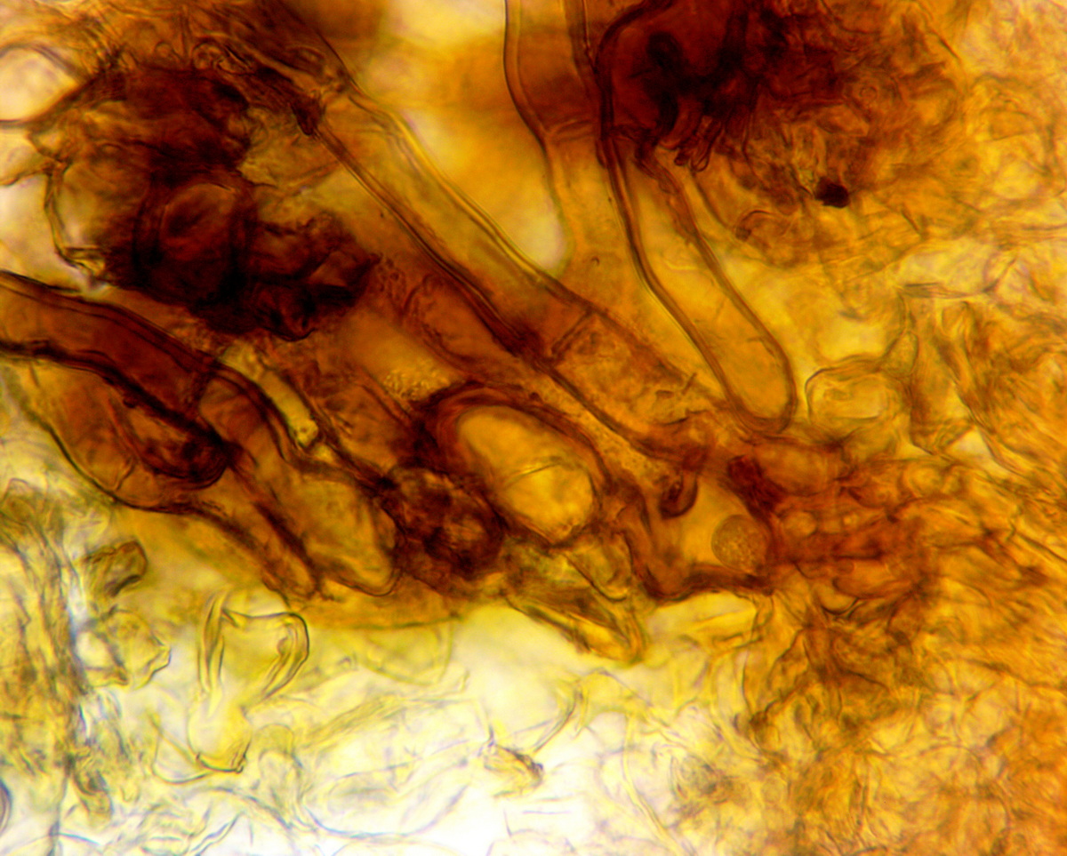 textura intricata, frmata da ife cilindriche alcune con rigonfiamenti,