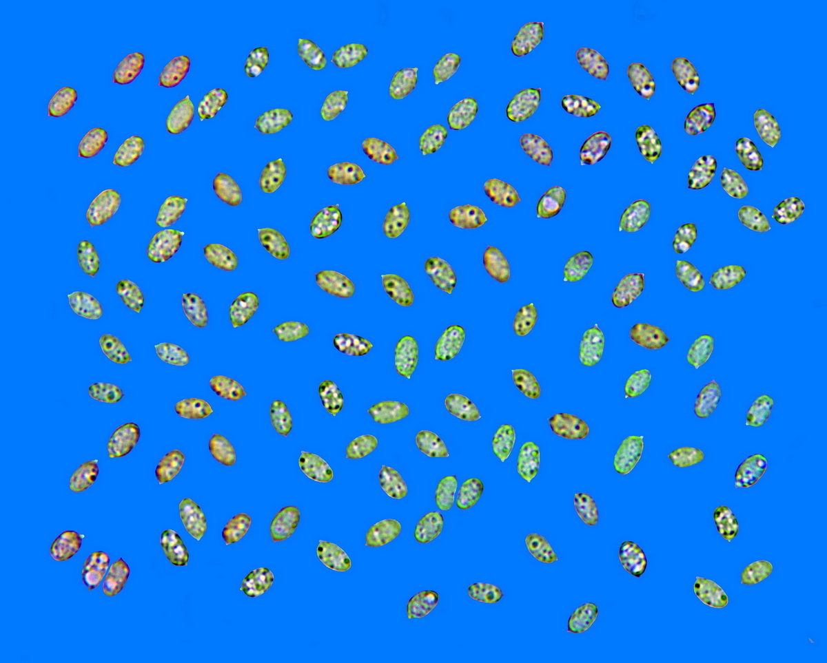 ellissoidali, subcilindriche, amiloidi, (6,87)7,34-7,71-8,75(9,69)