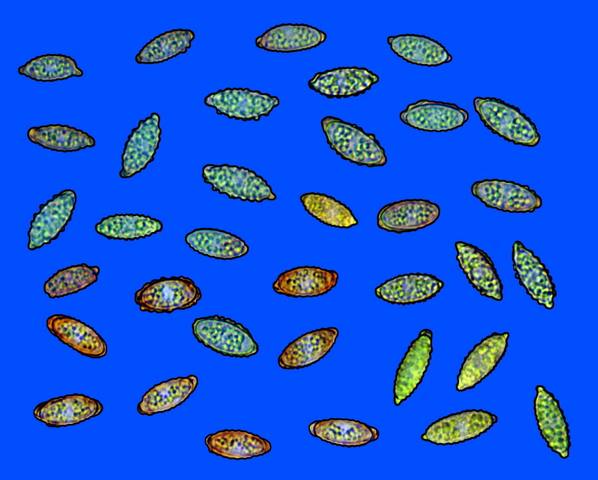 aggrovigliate, larghe (1,60)2,17-2,67-3,32(3,66)µm.