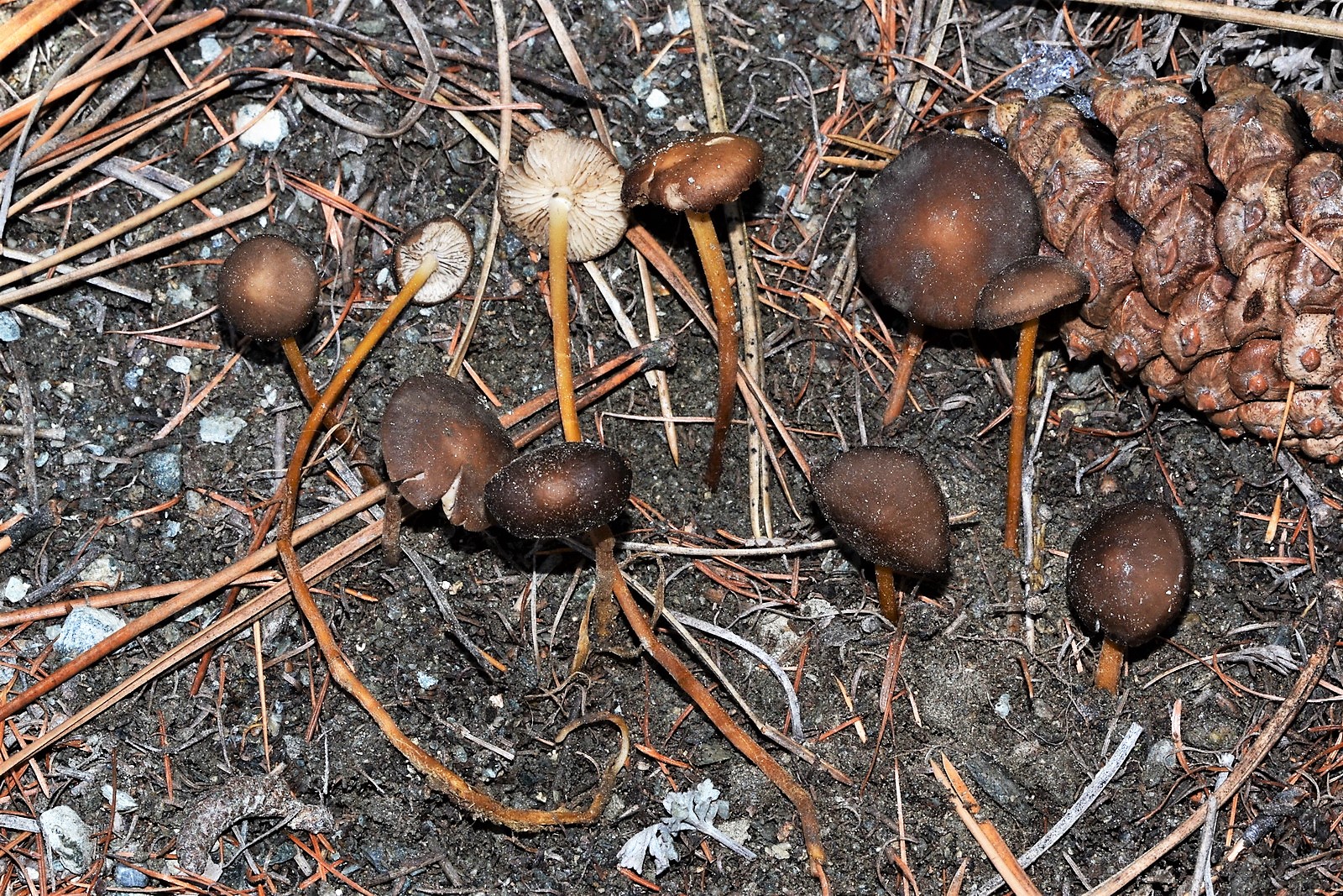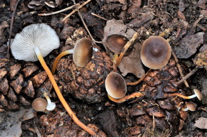 longitudinalmente fibrilloso, radicante, base con feltro micelare