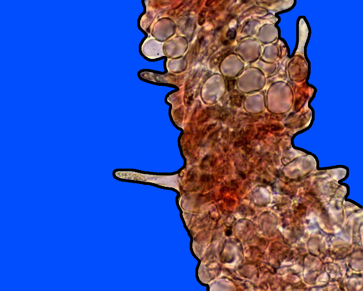spessa, con emergenti dermatocistidi ± fusiformi.