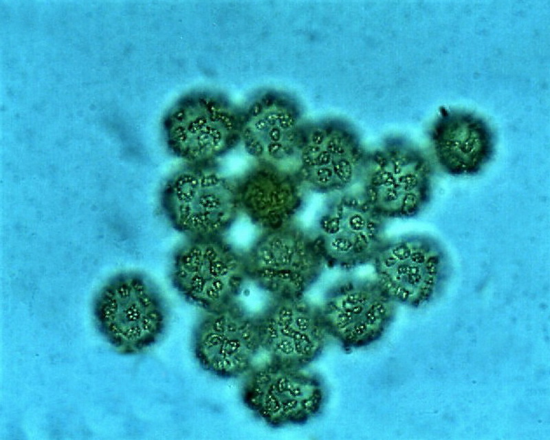 10,23-12,61-13,26 x 9,83-11,42 µm., con verucche alte
