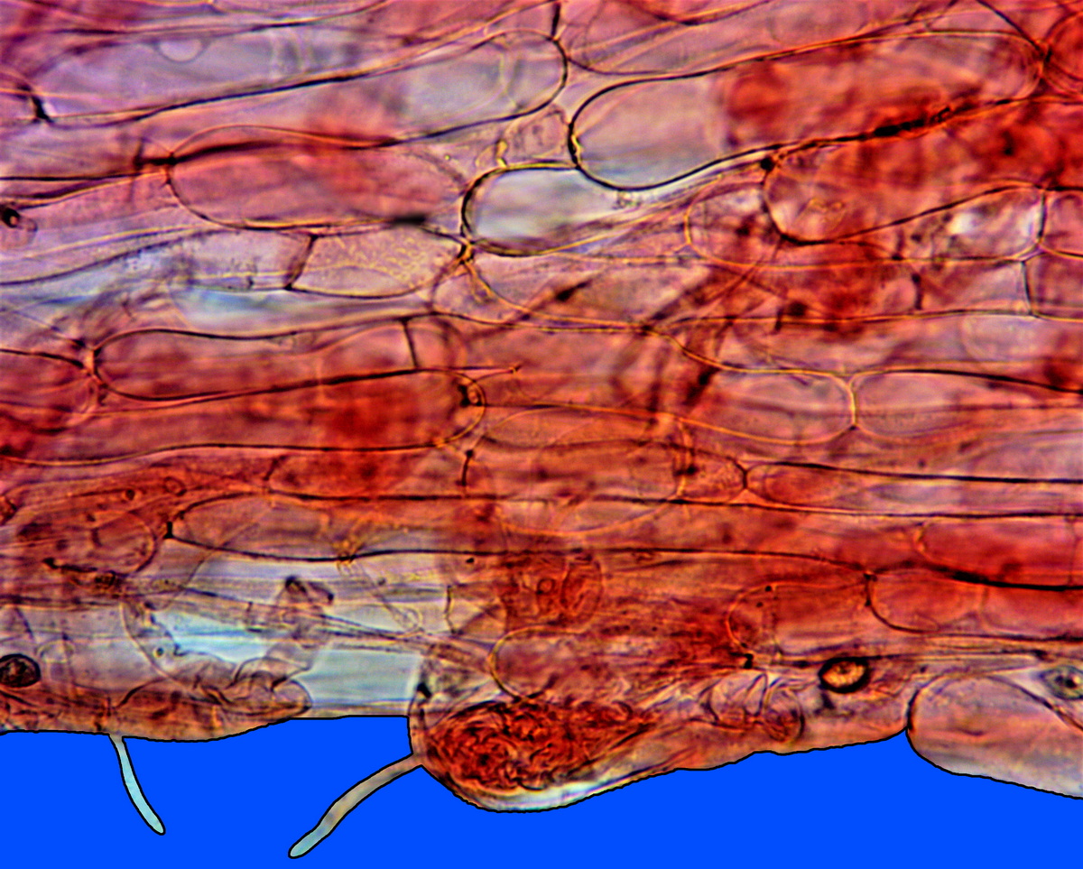 con elementi terminali eretti a tricoderma, con pigmento incrostante