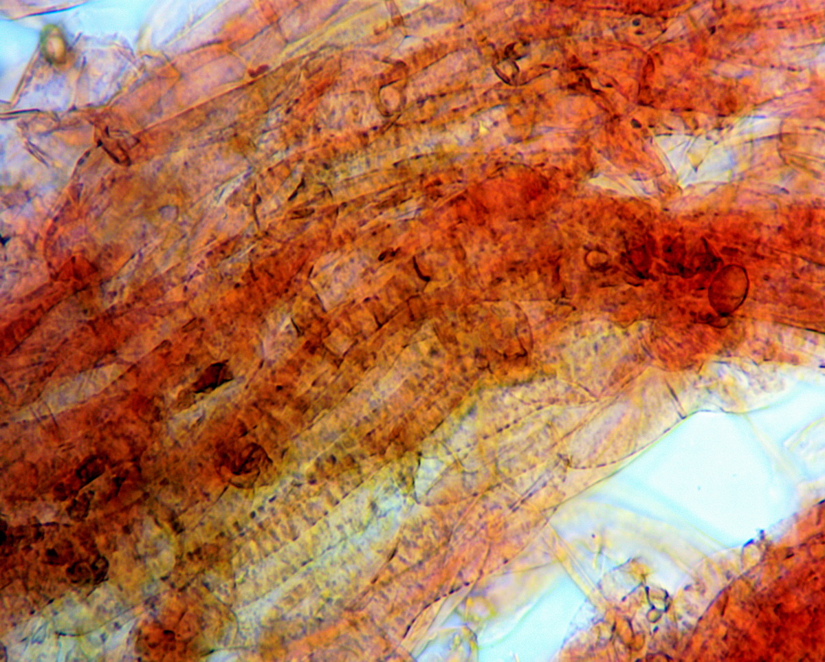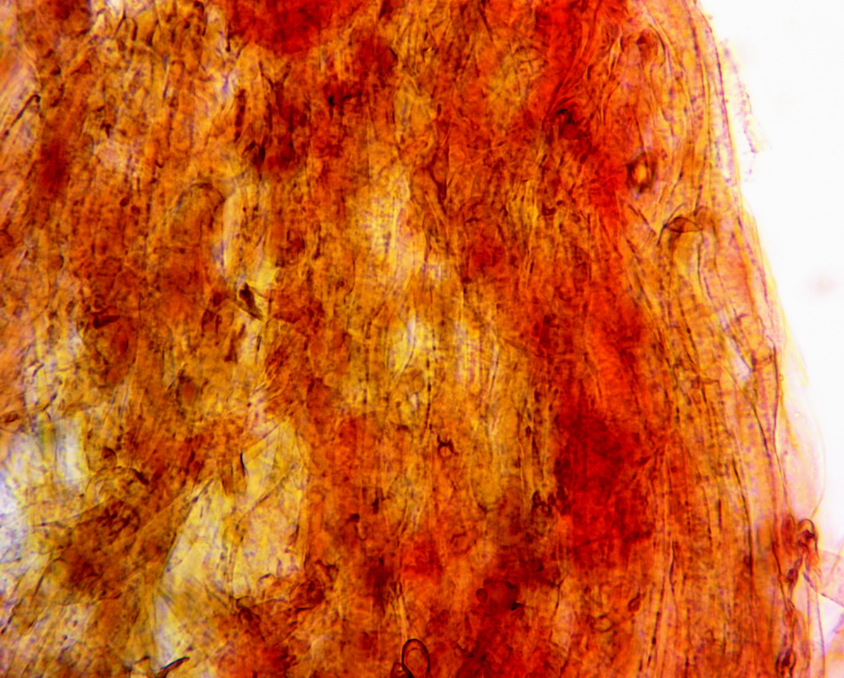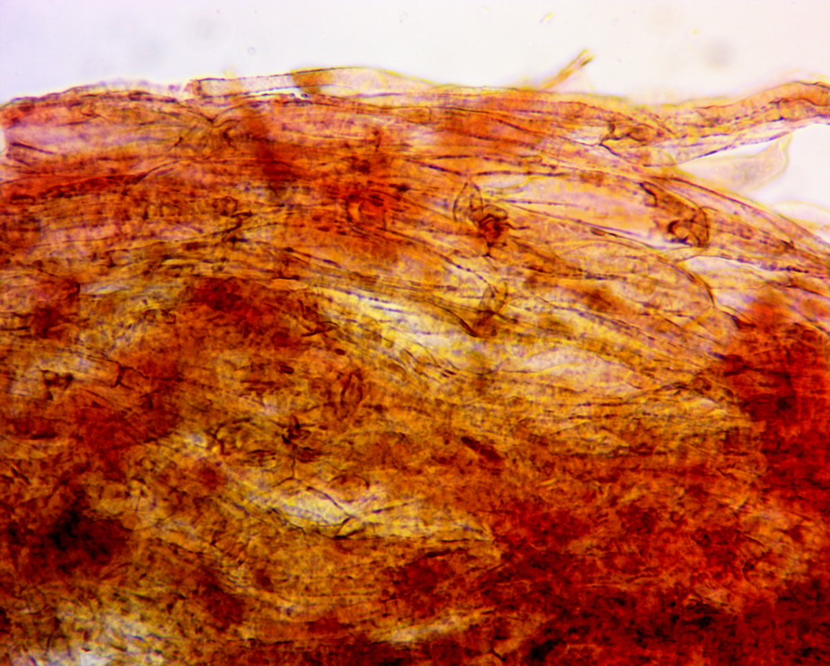 fibrilloso, bruno-giallastro, più scuro verso la base,
