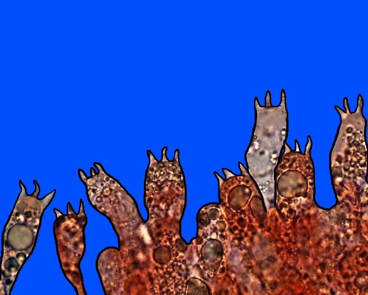 claviforme, corto, fistoloso poi cavo, pruinoso-fioccoso specialmente