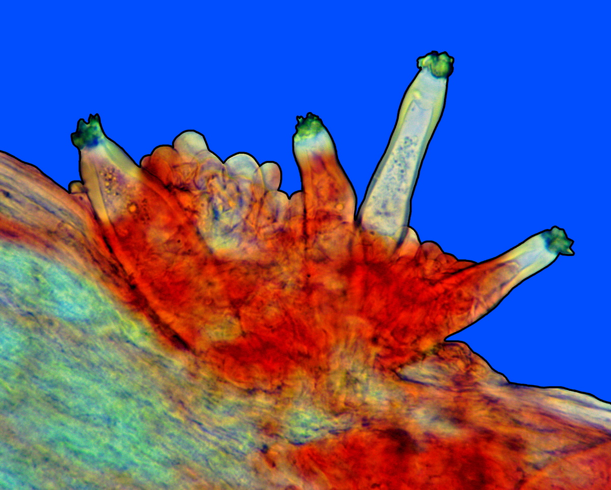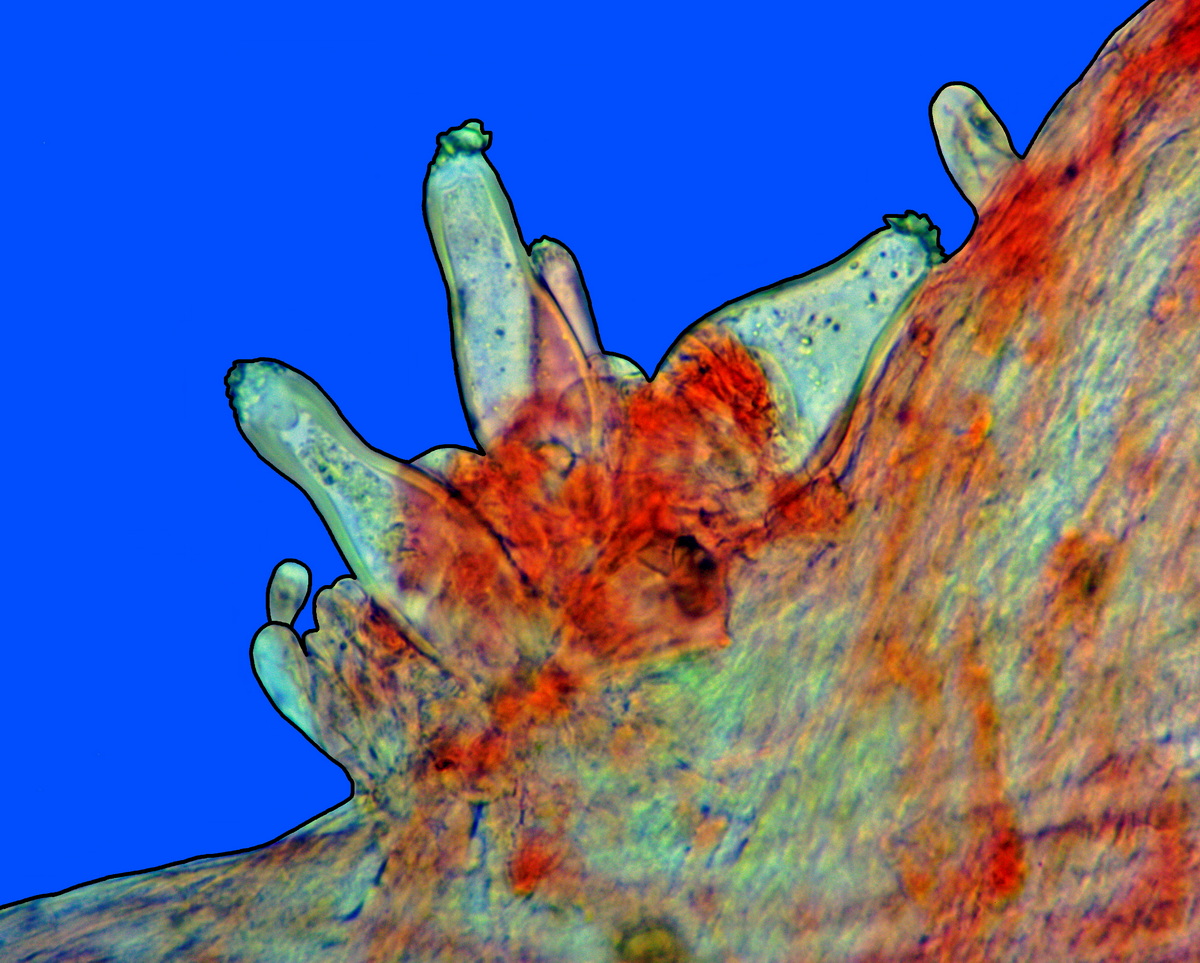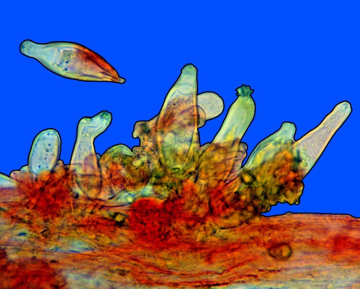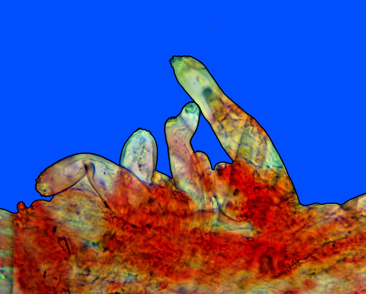, frammisti a cauloparacistidi subglobosi, clavato-piriformi.