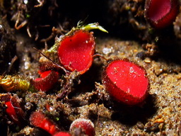 Apotecio 2-6 mm di diametro, a forma coppa,