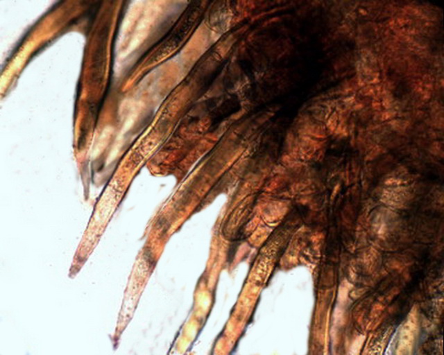 cilindriche, settate, forcate, con apice clavato, largo 7,64-13,07